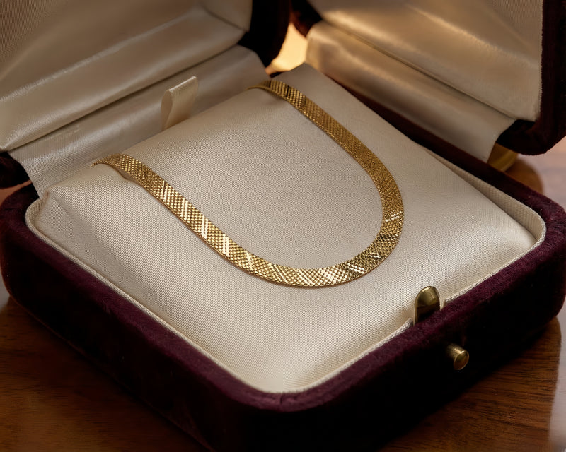 We work only in 14 karat solid gold. Never plated, never hollow, never compromised. Each piece is hallmarked and certified, with full transparency on weight and purity. Our artisans spend 8 to 40 hours on a single piece, depending on complexity. We believe you should know exactly what you're wearing and who made it.